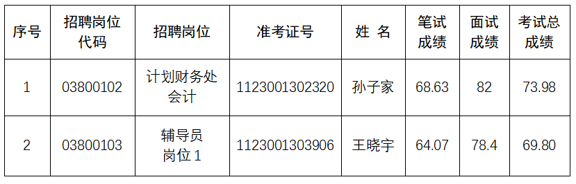 考察与体检递补人员名单